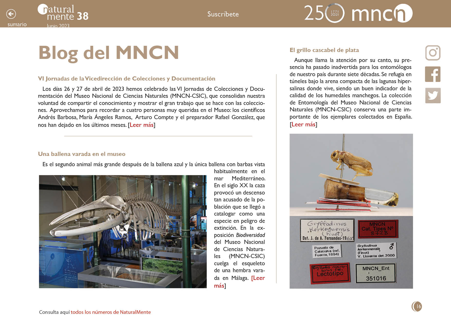 Blog del MNCN Entradas del Blog del MNCN publicadas entre el 15 de marzo y 15 de junio de 2023 Publicado en NaturalMente 38 Autor Carmen Martínez Documentación Artículo en formato pdf Te podría interesar Bienvenidos al Blog del MNCN Contacto