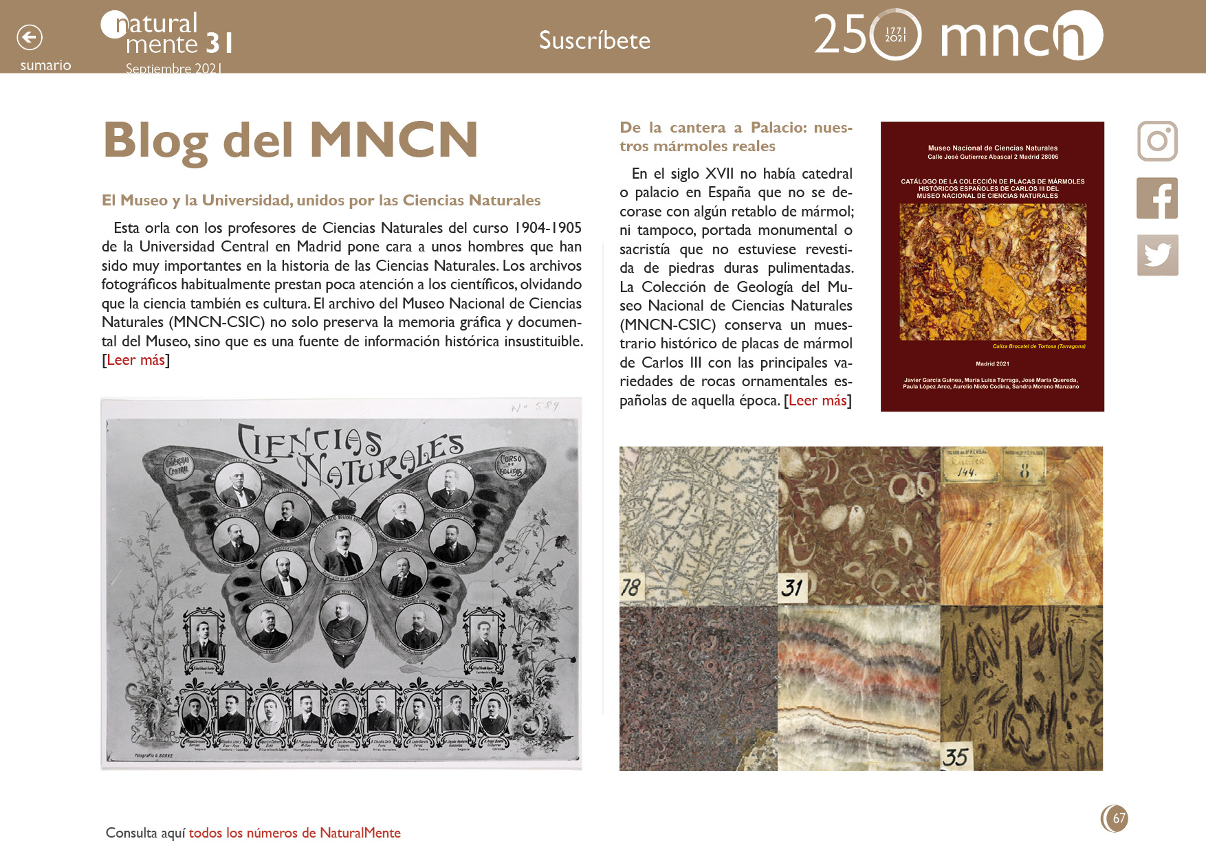 Blog del MNCN Entradas del Blog del MNCN entre el 15 de junio y el 15 de septiembre de 2021 Publicado en NaturalMente 31 Autor Carmen Martínez Documentación Artículo en formato pdf Contacto