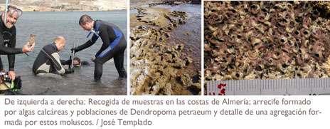 Dendropoma petraeum es un molusco gasterópodo (animales con concha, como los caracoles). Se trata de una especie protegida por la legislación europea y española, que presenta la peculiaridad de poseer una una concha en forma de tubo irregular, al contrario que en otros gasterópodos de concha normalmente espiralada. Dicho molusco forma agregados junto a algas calcáreas, creando pequeños arrecifes en las áreas más cálidas de Mediterráneo. 'Un estudio genético previo descubrió que bajo este nombre se agrupaban cuatro especies crípticas, es decir, especies muy similares morfológicamente pero genéticamente diferentes', explica la investigadora del MNCN Annie Machordom.
