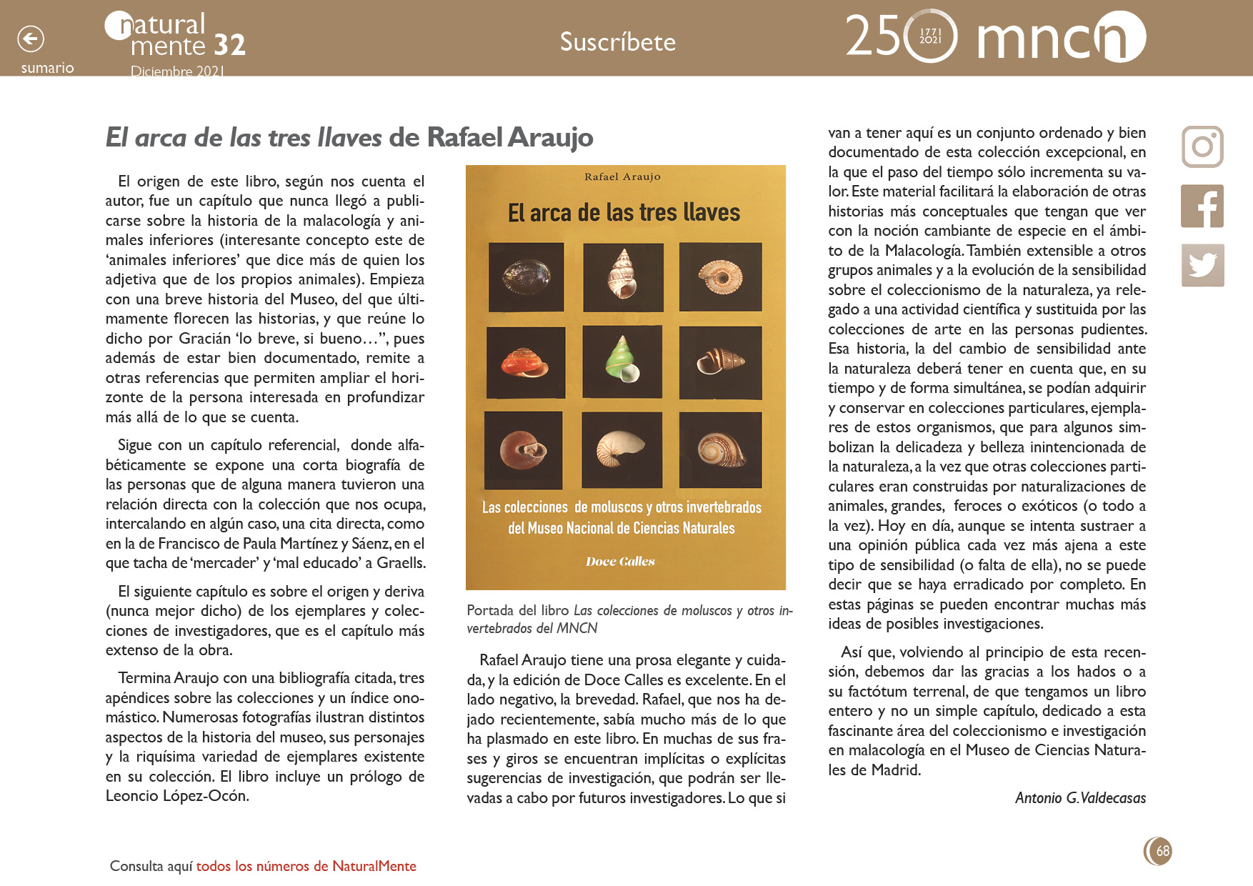 El origen de este libro, según nos cuenta el autor, fue un capítulo que nunca llegó a publicarse sobre la historia de la malacología y animales inferiores (interesante concepto este de ‘animales inferiores’ que dice más de quien los adjetiva que de los propios animales) que no llegó a publicarse. Empieza con una breve historia del Museo, del que últimamente florecen las historias, y que reúne lo dicho por Gracián ‘lo breve, si bueno…”, pues además de estar bien documentado, remite a otras referencias que permiten ampliar el horizonte de la persona interesada en profundizar más allá de lo que se cuenta.