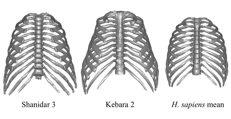 Han trabajado con los fósiles de Shanidar 3 y Kebara 2, dos individuos cuyas cajas torácicas están muy bien conservadas