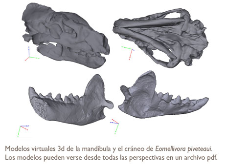 Con ayuda de un escáner láser superficial portátil, los investigadores han creado modelos virtuales tridimensionales que, además de imprimirse, pueden visualizarse desde un archivo pdf. “Los modelos en pdf que hemos creado complementan la información de la fotografía clásica y pueden suponer una herramienta con mucho potencial en el futuro de la paleontología de vertebrados”, concluye Valenciano.