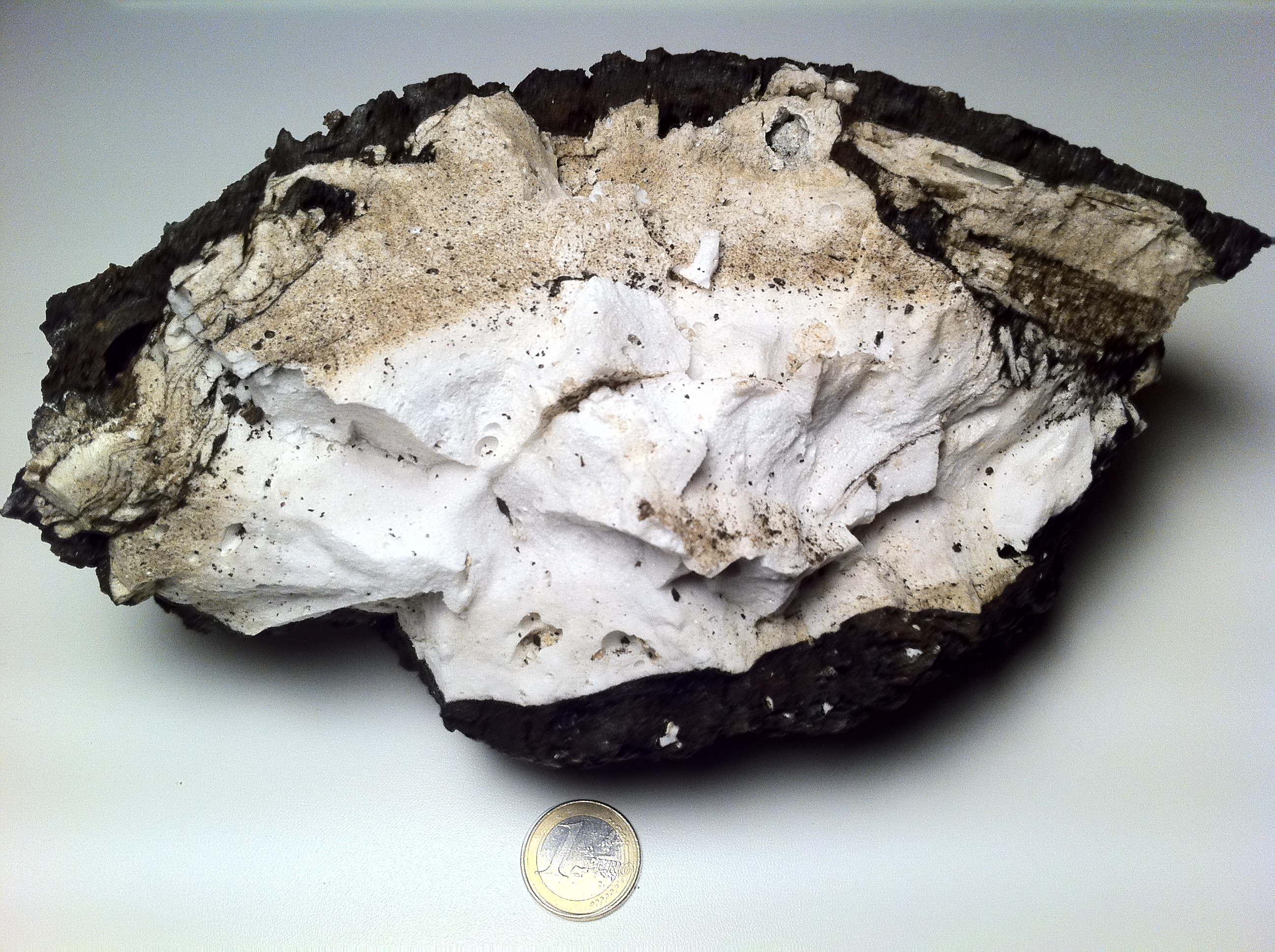 La reciente identificación de cristales de cuarzo y fragmentos de jaspe, sugiere que estas pumitas provienen previamente de rocas sedimentarias del fondo marino fundidas dentro del conducto eruptivo, y luego rodeadas de una capa de magma basanítico o basalto, de ahí el color negro exterior de la muestra que se expone en el MNCN. En consecuencia, la erupción lanzó rocas vítreas ligeras, que ascendieron flotando hasta la superficie del mar donde fueron rescatadas por el patrón de la embarcación Nautilux mientras faenaba.