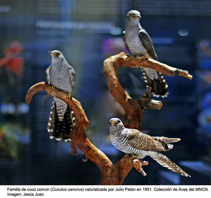 Es el heraldo de la primavera. Ningún otro pájaro es tan popular, todo el mundo conoce el canto del macho, ese 'cucú' que es el origen de su nombre. El cuco común (Cuculus canorus) es el protagonista de muchas leyendas, aunque su carácter esquivo hace muy difícil su observación. También es conocido porque pone sus huevos en los nidos de otras especies más pequeñas que él, confiando en que éstas críen a los pollos. El Museo Nacional de Ciencias Naturales (MNCN-CSIC) exhibe en la sala de Biodiversidad una familia de cucos que fue naturalizada por Julio Patón en 1951.