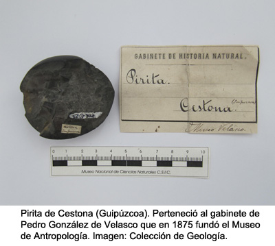 El Museo conserva una importante colección de piritas procedentes de distintos yacimientos de la geografía ibérica, algunos de ellos colectados por importantes geólogos como Lucas Fernández Navarro, Salvador Calderón, etc. También reúne ejemplares históricos como los colectados en Chile y Perú durante la expedición de los hermanos Heuland (1795-1800), o algunos que formaron parte del gabinete de curiosidades del médico segoviano Pedro González de Velasco que en 1875 fundó el Museo de Antropología.