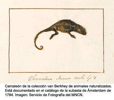 La fabulosa colección van Berkhey, reunida por el naturalista neerlandés Johannes van Berkhey, fue adquirida en 1785 por Carlos III para el Real Gabinete. La colección, que pretendía ser una recopilación del mundo natural conocido hasta entonces, constaba de más de 9.000 láminas (el 75% de las cuales eran zoológicas), animales naturalizados y libros. En la exposición monográfica 'Naturalezas Ilustradas' que le dedicó el MNCN en 2015 se presentó una selección de dibujos y grabados, además de libros y otros objetos procedentes del Real Gabinete, pero no se exhibieron los animales naturalizados que llegaron con la colección, ni las cajas y carpetas en las que se guardaban los animales y las láminas. De los animales naturalizados existen tres fuentes documentales: la del Catálogo de la subasta de Ámsterdam (1785), que no llegó con la colección al Real Gabinete; la del Inventario que Franco Dávila realizó por la ausencia del citado catálogo (1786), y la tesis de Paloma Lorente 'Colección iconográfica van Berkhey, siglo XVIII. Los dibujos zoológicos' (1998), que indica los piezas conservadas en el MNCN a finales del siglo XX. La colección de animales naturalizados está constituida por invertebrados y pieles de vertebrados (peces, reptiles y mamíferos). De las 160 carpetas en las que van Berkhey guardaba su colección, actualmente en el Museo sólo se conservan 52, que se encuentran depositadas en la Biblioteca. Actualmente se están catalogando y digitalizando los ejemplares de vertebrados para tener un inventario completo de la colección van Berkhey que se conserva en el MNCN. Asimismo, se tomarán muestras de ADN de los especímenes, que pasaran a formar parte de la colección de Tejidos y ADN del Museo, para aquilatar el valor científico de la colección.