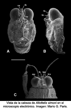 Entre los rasgos anatómicos utilizados para distinguir entre subfamilias dentro de la familia Tetrigidae, hay que mencionar la estructura sensorial de las antenas y el aparato genital de los machos. A partir del estudio de los ejemplares tipo, los autores revalidan el estatus taxonómico de Allotettix simoni y demuestran que los rasgos anatómicos utilizados hasta la fecha en la taxonomía del grupo podrían ser insuficientes.