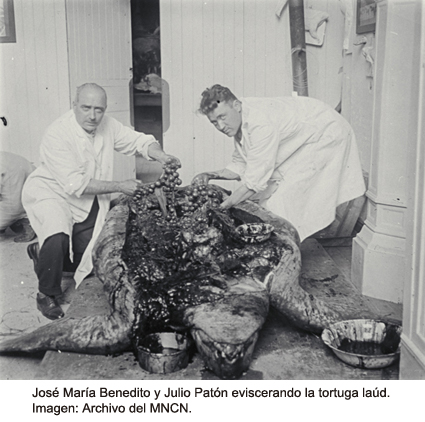 Un detalle curioso, que podría esclarecer su proximidad a la costa, era que la tortuga se encontraba muy enferma, con una grave lesión en el intestino, lo que explicaría que no se encontrase ningún alimento en el tubo digestivo, que medía nada más y nada menos que 18 metros. Sin duda se trataba de un animal extraordinario, que los hermanos Benedito calificaron como una gran adquisición.