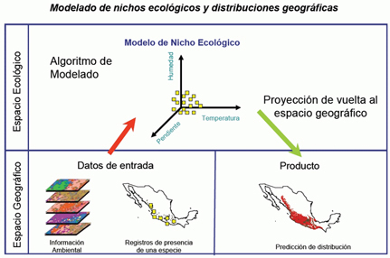 Townsend Peterson, A., Soberón, J., Pearson, R. G., Anderson, R. P.,Martínez-Meyer, E., Nakamura, M. , Araújo, M. B. 2011. Ecological Niches and Geographic Distributions. Monographs in Population Biology nº 49. Princeton University Press.