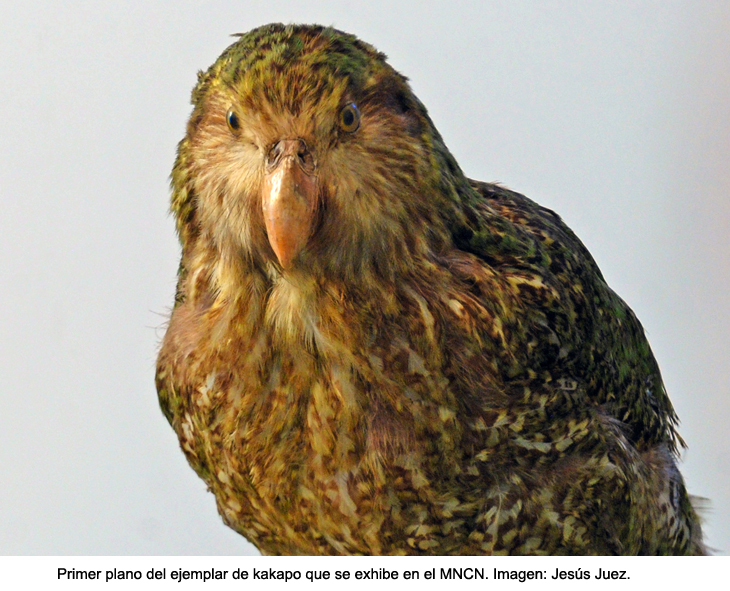 Es una de las especies más amenazadas del mundo: quedan menos de 160 ejemplares. Estas aves eran comunes en los bosques de Nueva Zelanda antes de que los humanos colonizasen las islas. Pero los mamíferos introducidos por los colonos europeos depredaron brutalmente sobre este loro, que es incapaz de volar, hasta el punto de que a mediados de los noventa apenas quedaban 50 individuos. El Museo Nacional de Ciencias Naturales (MNCN-CSIC) exhibe un ejemplar colectado en el siglo XIX en la exposición Biodiversidad.