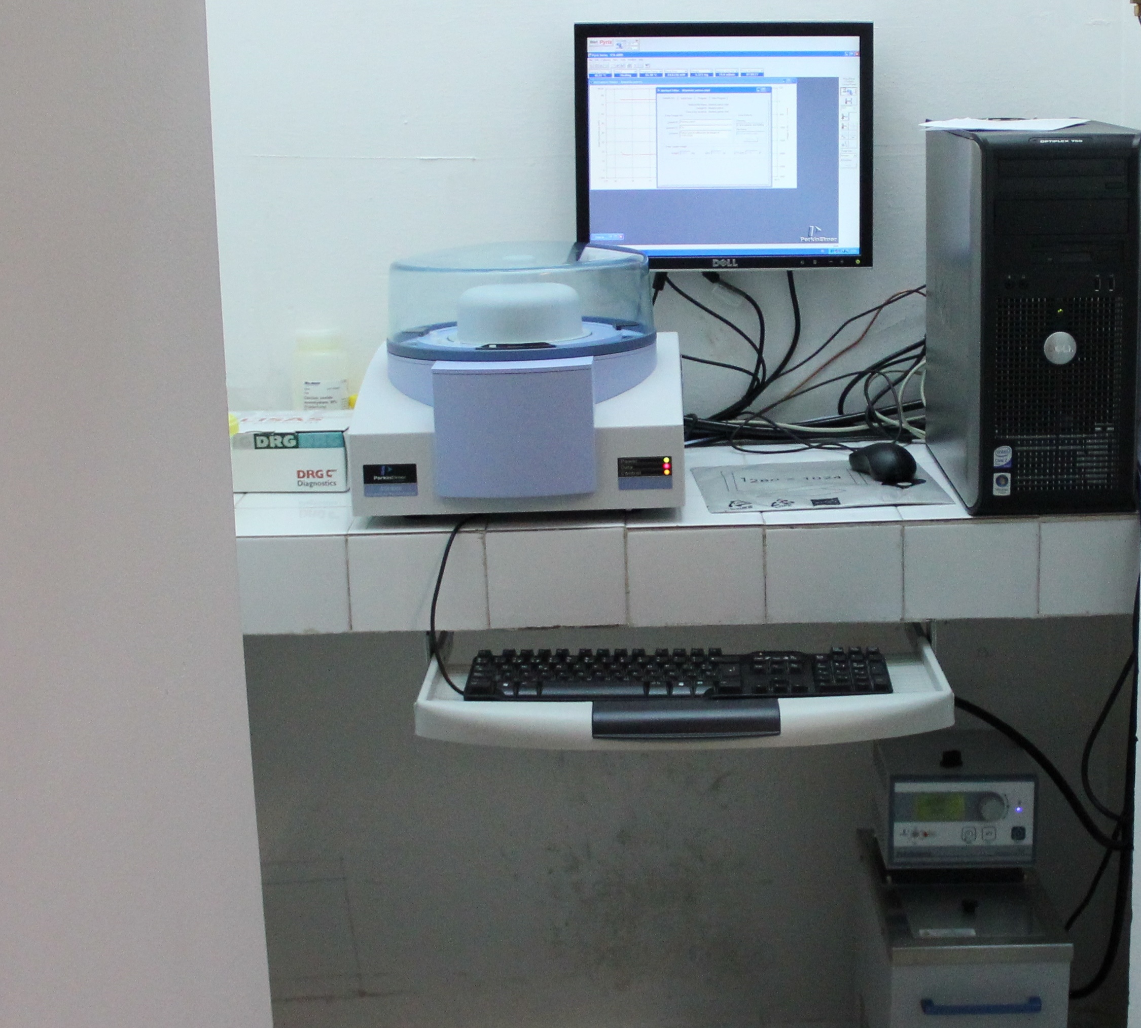 El equipo de análisis térmico STA 6000 registra simultáneamente análisis termogravimétrico (ATD) y el análisis termodiferencial (ATD) el de una muestra, desde los 15º hasta 950ºC. También puede registrar su enfriamiento de los 950º hasta los 15ºC, todo ello en dos atmósferas diferentes: aire y nitrógeno. Además, tiene acoplado un automuestreador con 45 posiciones que permite automatizar los análisis.