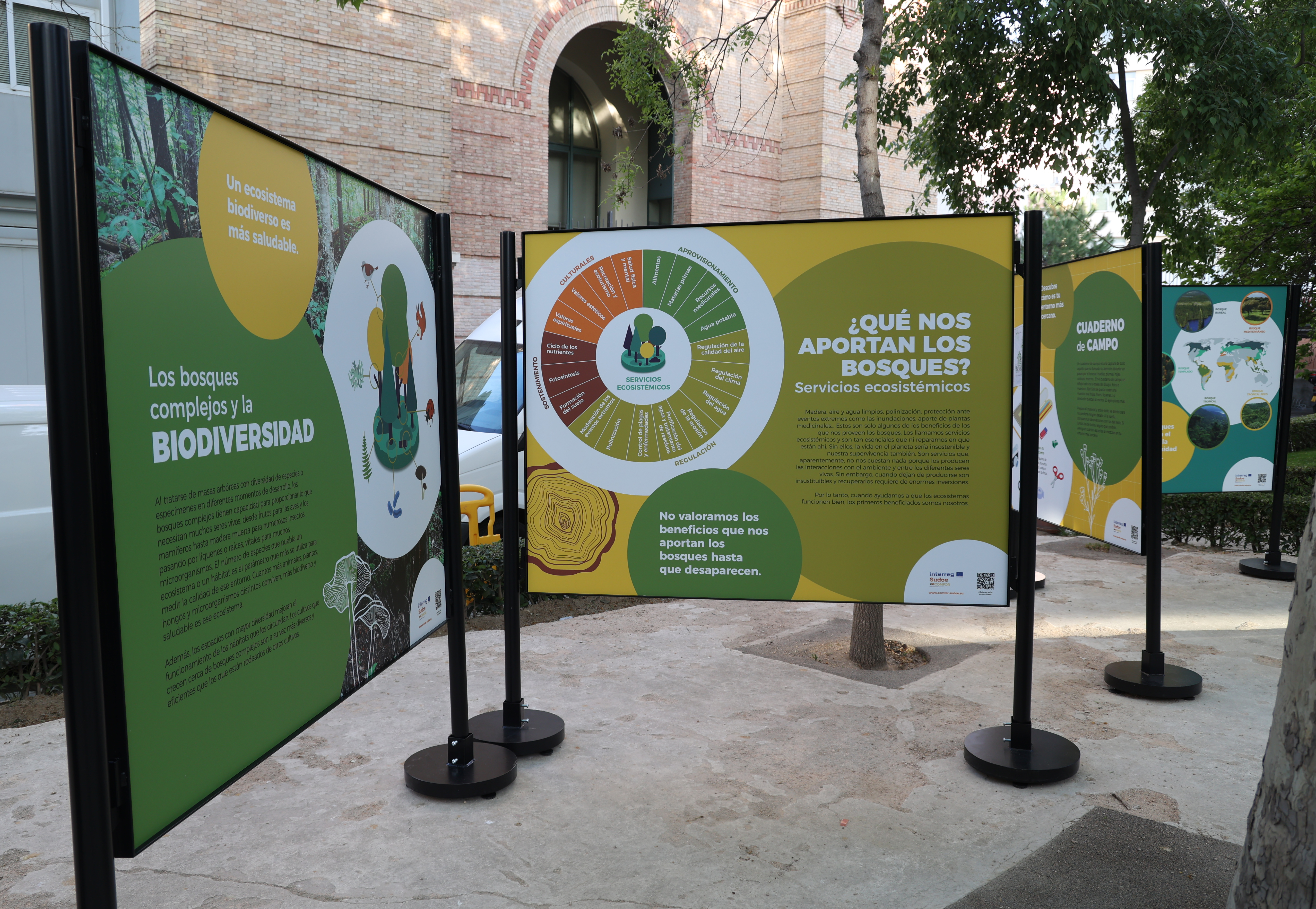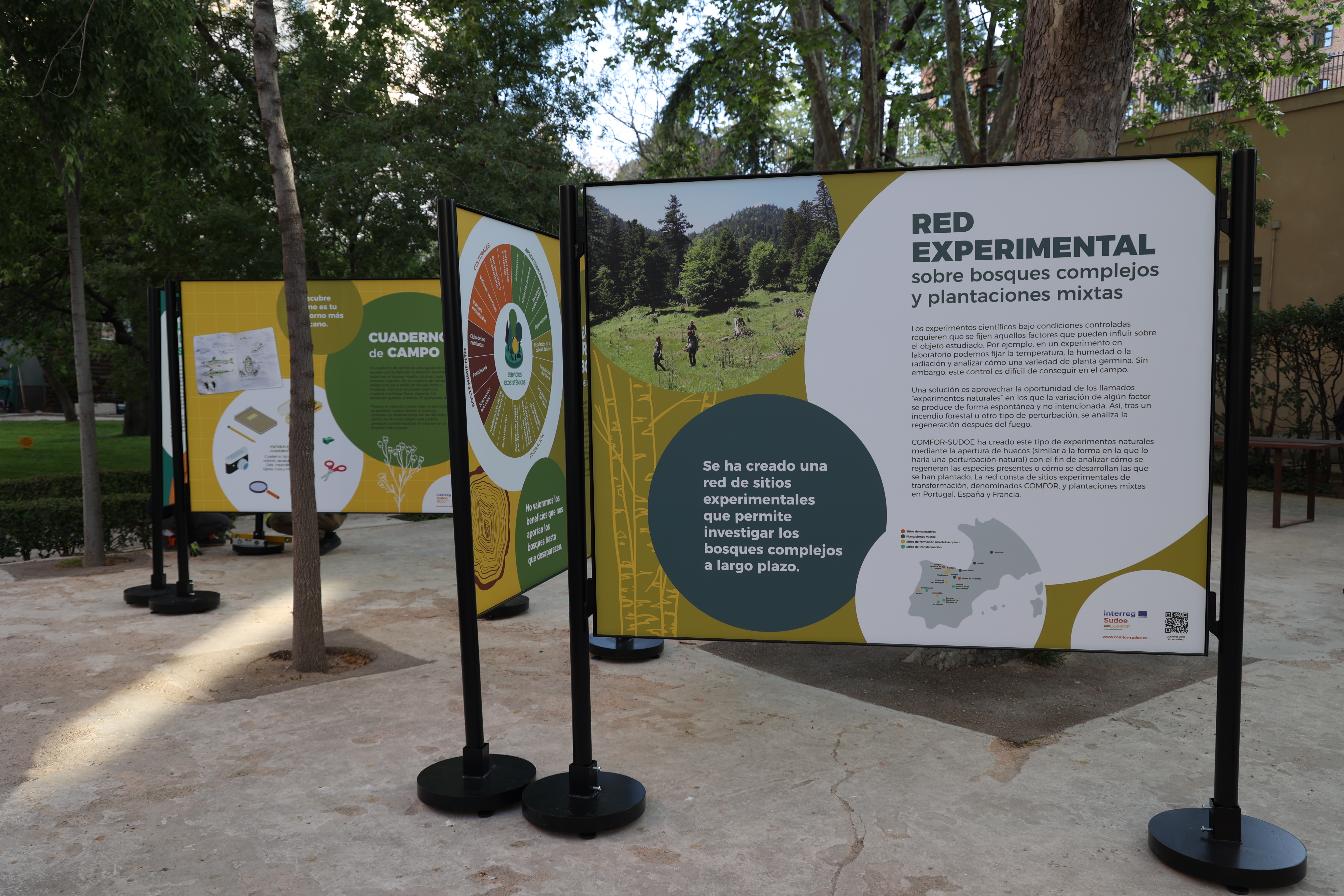 La exposición Bosques complejos, nuestros aliados es un acercamiento a los bosques mixtos y complejos, así como a la gestión forestal, y forma parte del proyecto internacional COMFOR-SUDOE (COMplex FORests en el SUDOeste de Europa). En ella se explican los servicios ecosistémicos que aportan los bosques, tales como los recursos de aprovisionamiento (madera, agua o alimentos) o la regulación de los ecosistemas. Además, insiste en el papel que tienen en la lucha contra el cambio climático, por ejemplo, proporcionando protección ante eventos climáticos extremos o regulando los ciclos del carbono o el agua. Por ello, incide en la importancia de preservar estos bosques y las numerosas especies animales y vegetales que albergan, ya que una mayor biodiversidad supone un ecosistema más saludable.