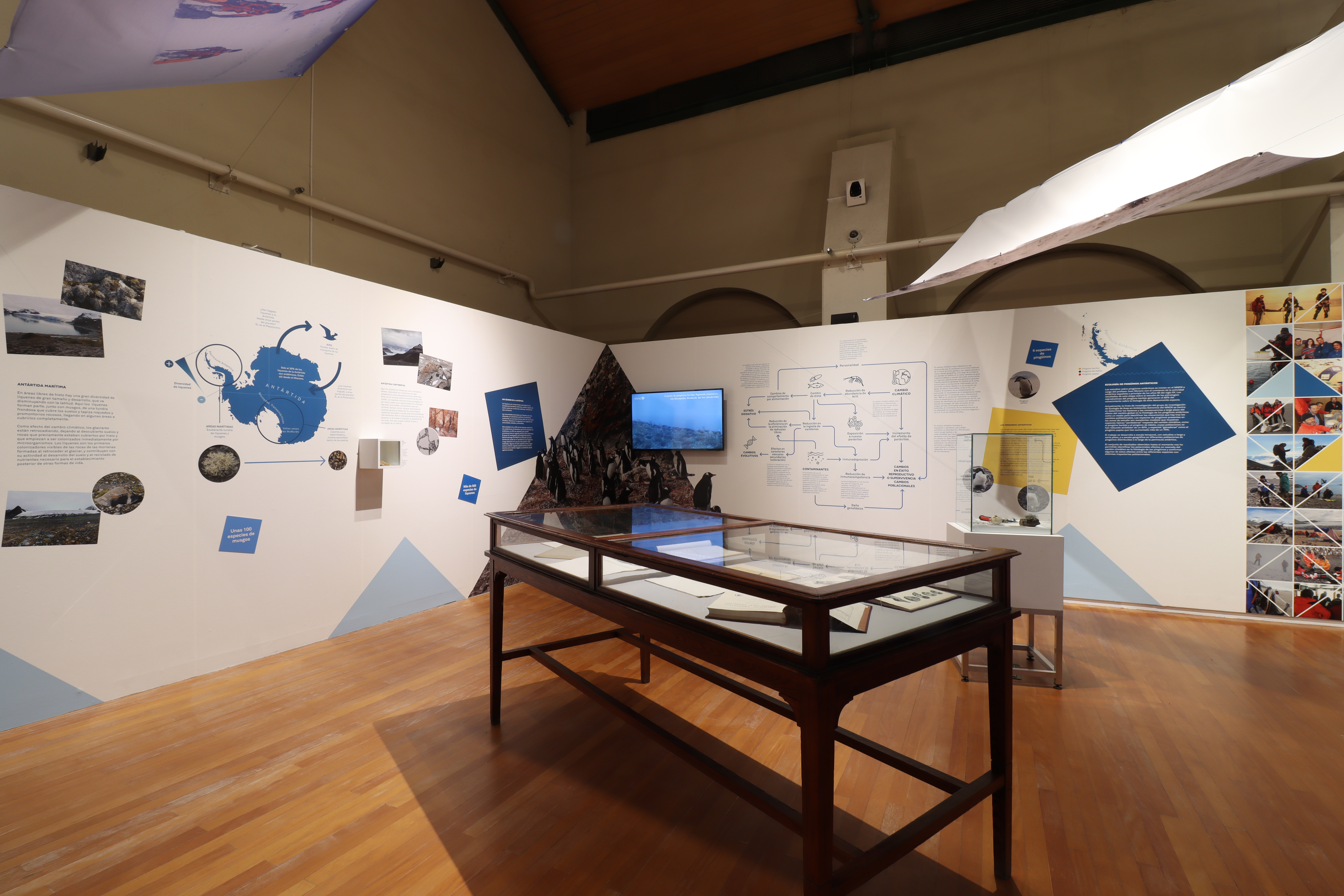 El museo lleva más de 30 años investigando el funcionamiento del ecosistema antártico y cómo se ve afectado por la acción humana. Las numerosas expediciones que se llevan a cabo utilizan infraestructuras permanentes como las bases científicas, los campamentos temporales o los buques oceanográficos. Pingüinos, líquenes y volcanes son los protagonistas de esta investigación en condiciones extremas.