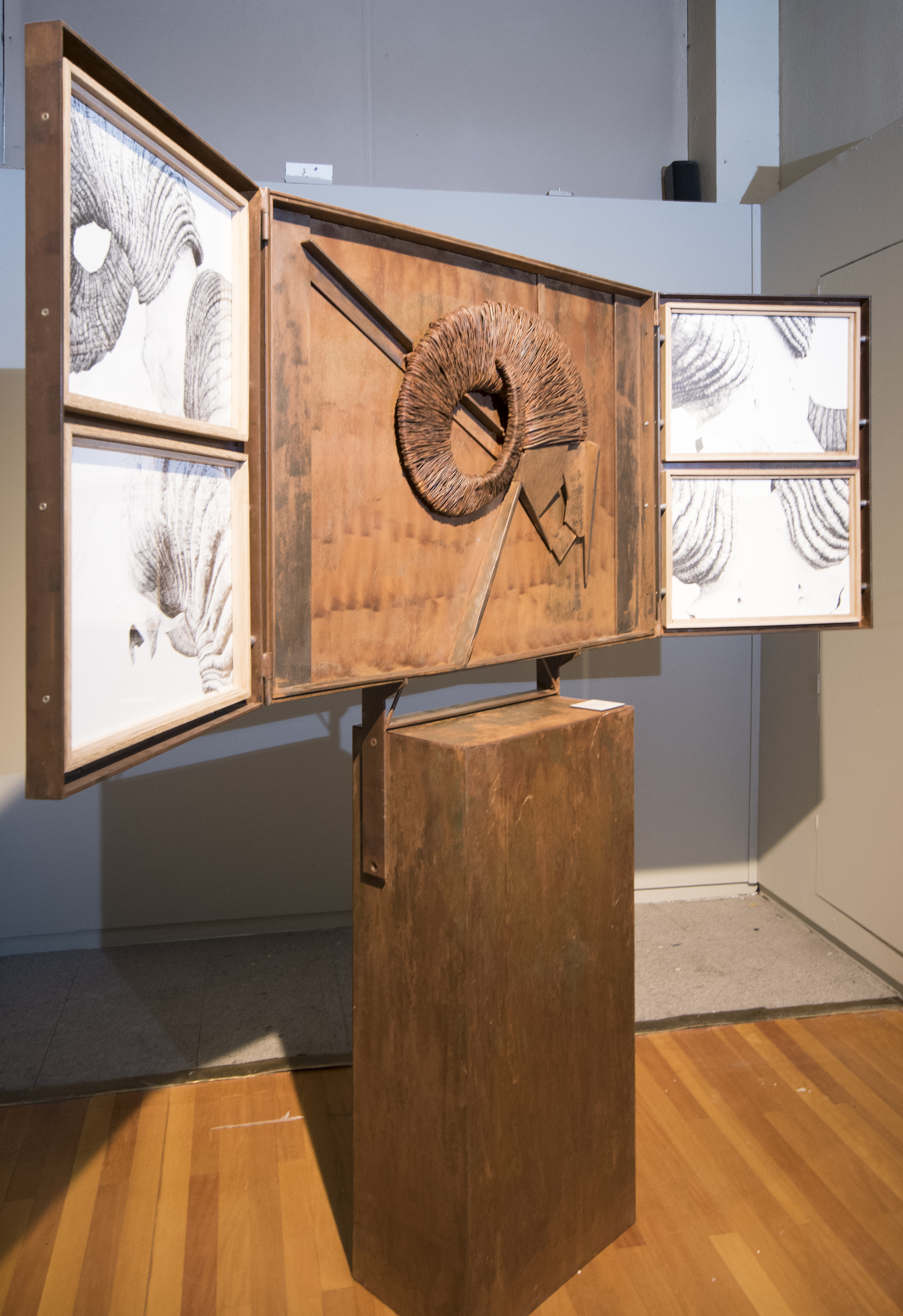 El autor se ha inspirado en estas formas orgánicas para contar una historia en el tiempo: el proceso que va desde la formación del cráneo durante la gestación del animal, hasta que se encuentra, millones de siglos después, convertido en un elemento fósil enterrado bajo tierra: La naturaleza observada con atención es fuente inagotable de pensamiento.