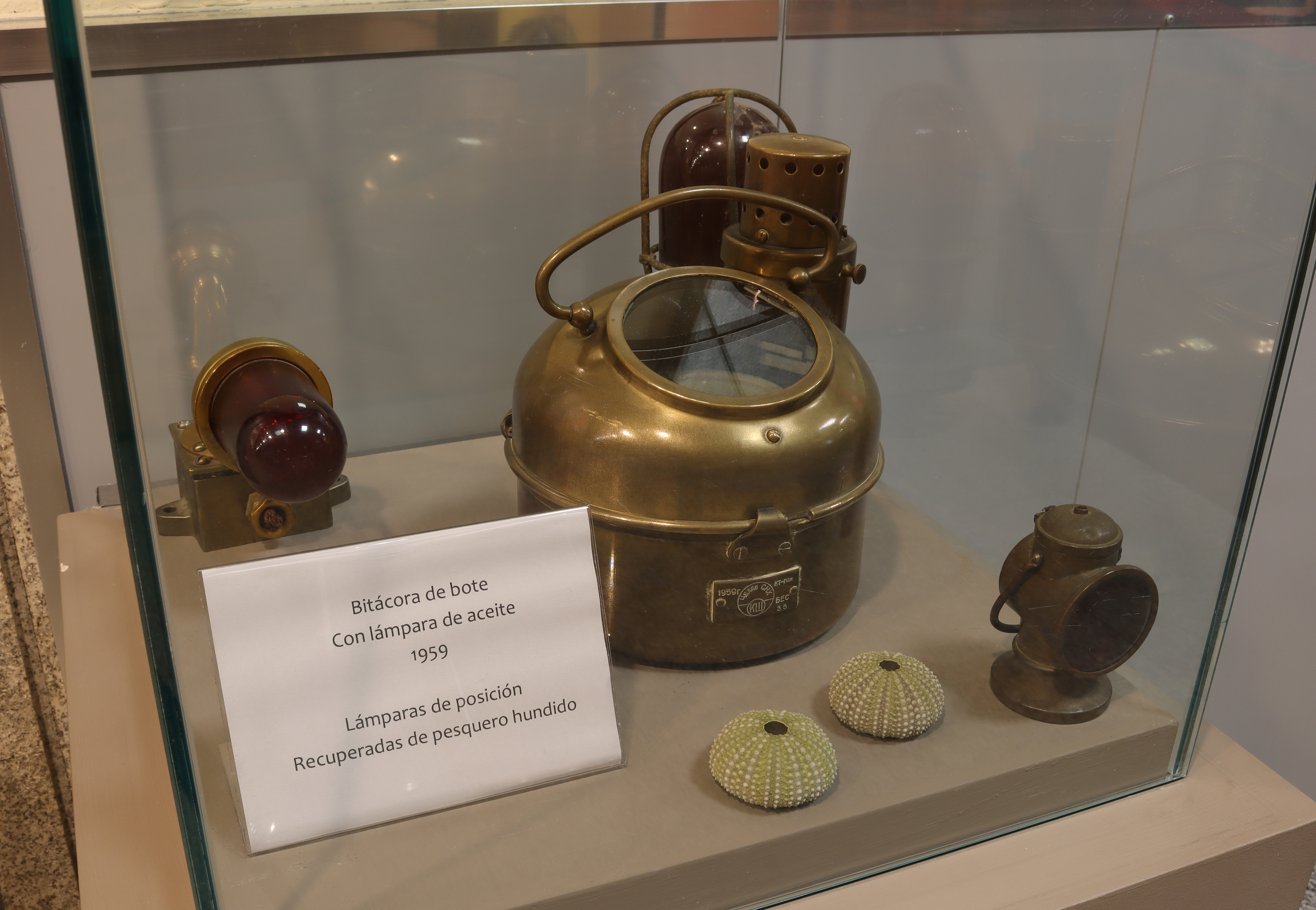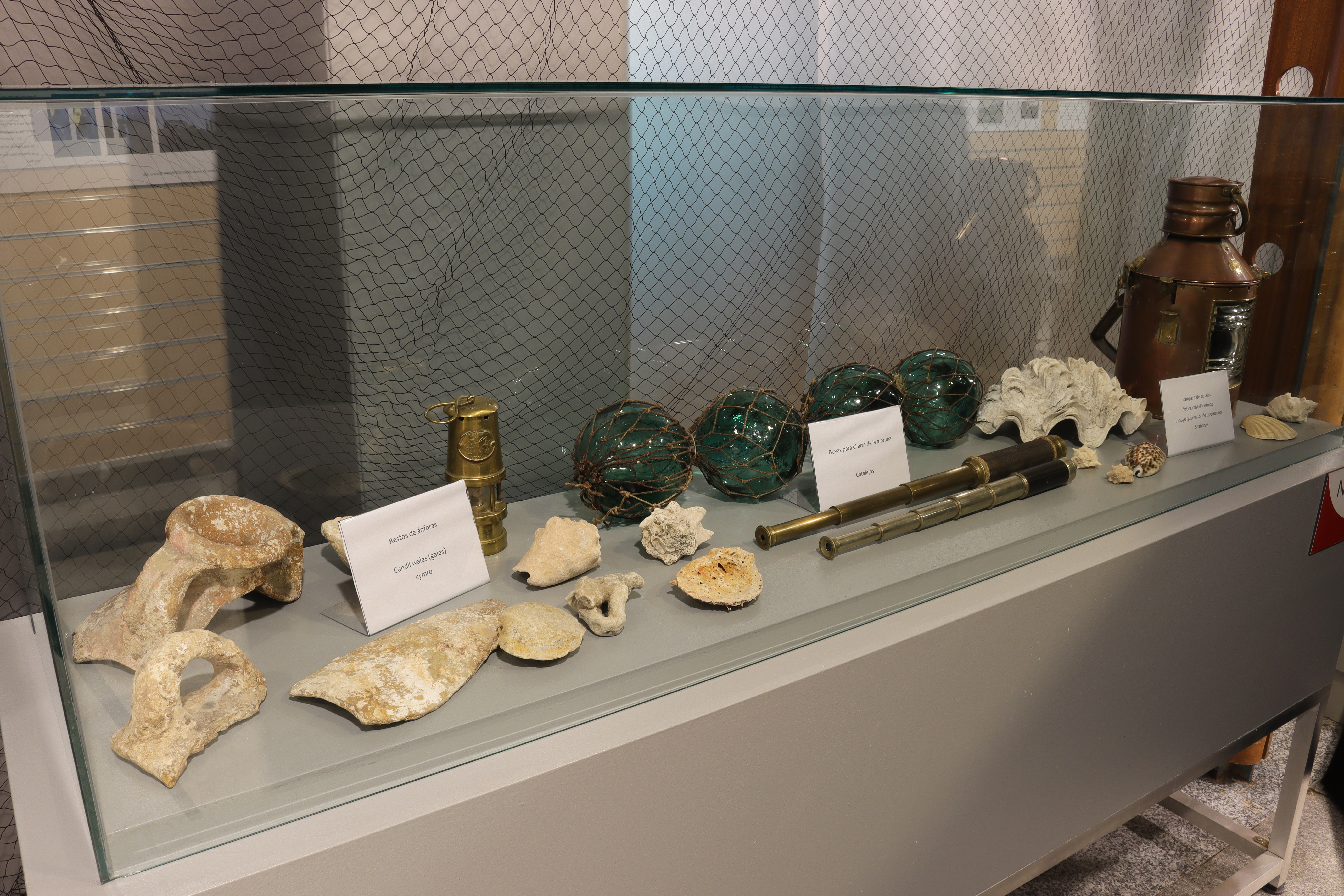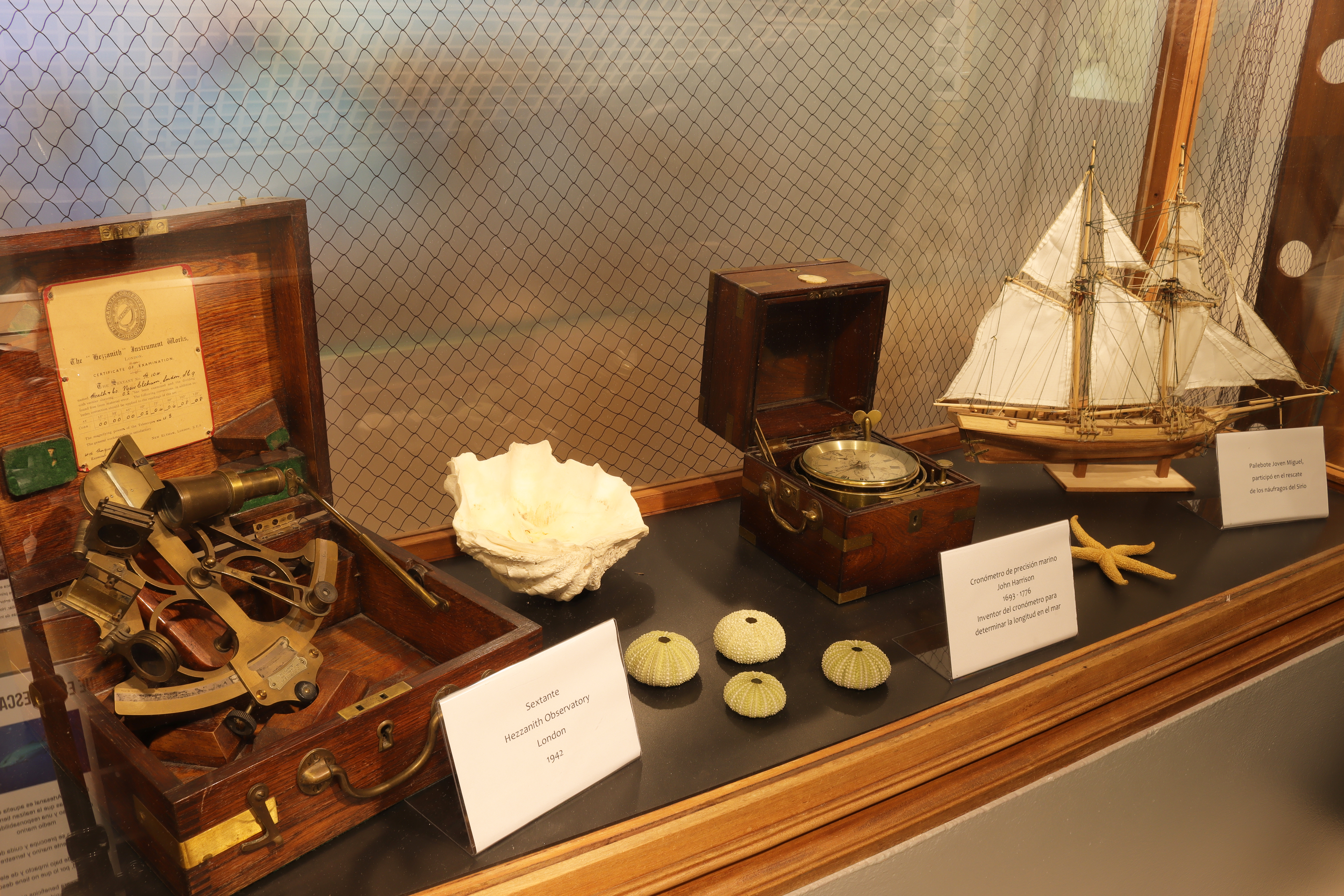 Cabe destacar la exposición de piezas históricas como la escafandra de buceo de fabricación española Nemrod, un cronometro marino de alta precisión John Harrison, sextantes, utensilios de navegación de la época y artes de pesca artesanal.